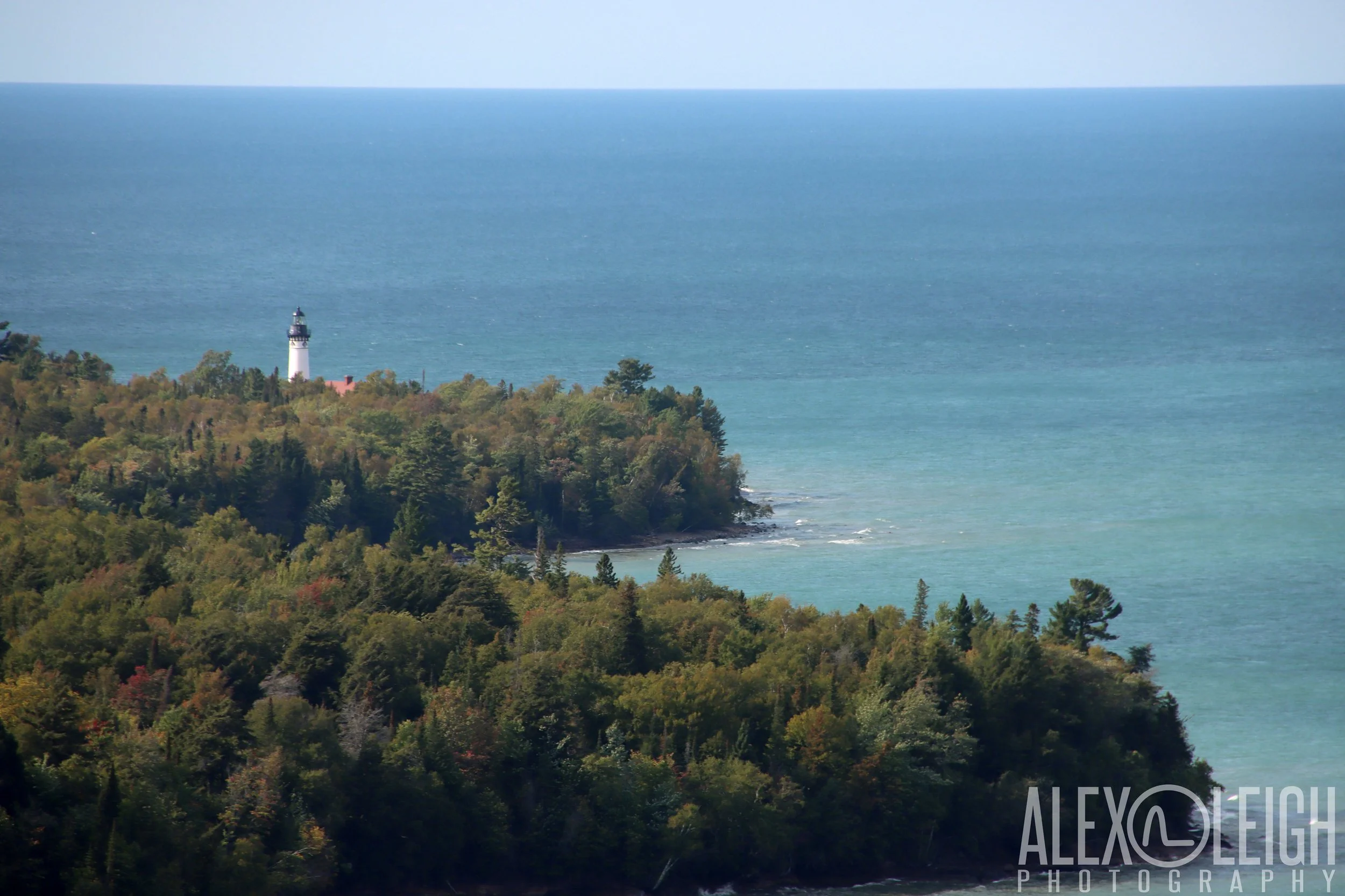 Close-up view of Au Sable Light Station from Log Slide Overlook
